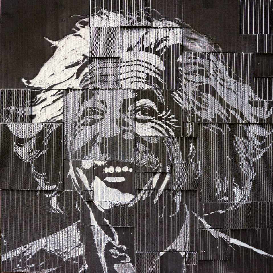 Cette sculpture d'Albert Einstein, réalisée à partir de radiateurs de voiture recyclés, met en avant l'art du réemploi. L'artiste a assemblé plusieurs morceaux de radiateurs usagés pour créer un portrait saisissant, façonné avec une simple petite cuillère. Cette approche artisanale et créative transforme des objets destinés à l'obsolescence en une œuvre d'art unique, symbolisant la réinvention et l'innovation. L'utilisation de matériaux recyclés renforce le message écologique de la sculpture, tout en rendant hommage à l'esprit scientifique d'Einstein.